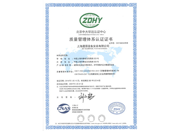 質量管理體系認證證書